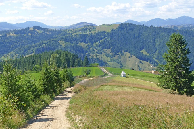 CHERNIVTSI REGION, UKRAINE - JULY 31, 2024 - A road is in the Carpathians Mountains, Vyzhnytsia district, Chernivtsi region, western Ukraine., Credit:Yurii Rylchuk / Avalon