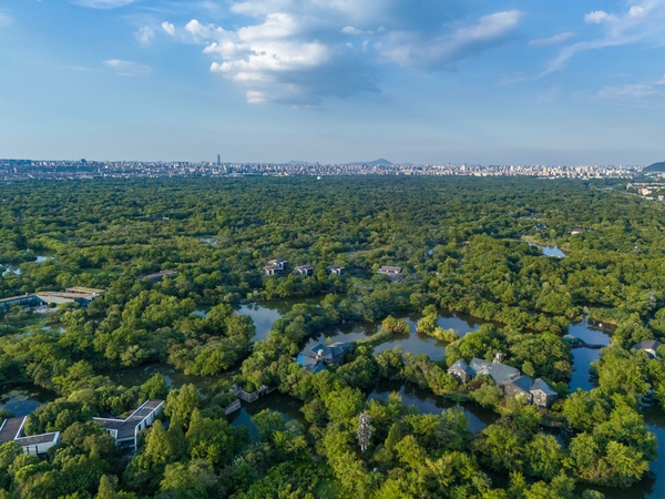 A view of the massive Xixi Wetland in the urban area of Hangzhou city in east China's Zhejiang province Saturday, Aug. 03, 2024., Credit:FEATURECHINA / Avalon
