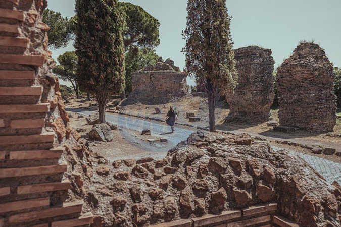 Tourists at the Appian Way Archaeological Park. Rome, Italy, Credit:Luigi Narici / Avalon