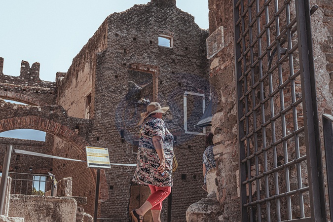 Tourists at the Appian Way Archaeological Park. Rome, Italy, Credit:Luigi Narici / Avalon
