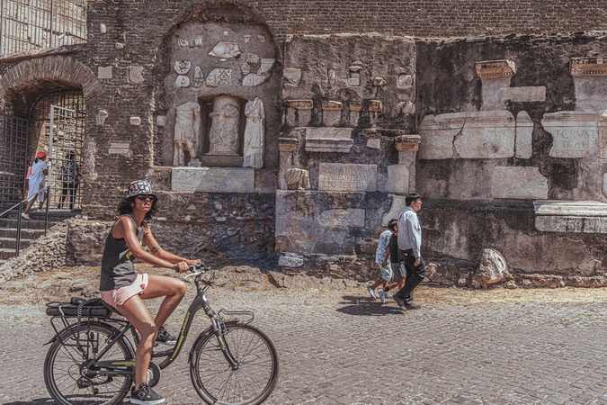 Tourists at the Appian Way Archaeological Park. Rome, Italy, Credit:Luigi Narici / Avalon