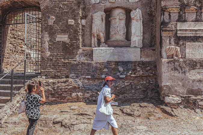 Tourists at the Appian Way Archaeological Park. Rome, Italy, Credit:Luigi Narici / Avalon
