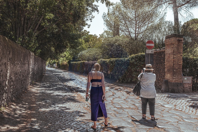 Tourists at the Appian Way Archaeological Park. Rome, Italy, Credit:Luigi Narici / Avalon