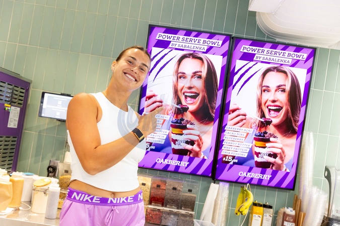 New York, NY – Tuesday, August 21st, 2024: Women's tennis ace and two-time Grand Slam Champion, Aryna Sabalenka, can now add culinary maestro to her repertoire of talents, after delving in to the world of health-conscious nutrition in collaboration with her new wellness partner, OAKBERRY, the world's leading açaí brand.The No.2 ranked player in the world introduced her own wholesome creation: the "POWER SERVE BOWL by Sabalenka” – her first signature açaí bowl, at the OAKBERRY store in New York City on Tuesday, ahead of her campaign to claim a highly contested US Open title. To celebrate the nationwide launch, Sabalenka welcomed a throng of delighted tennis fans and avid OAKBERRY invitees behind the counter at the OAKBERRY store on Lexington Avenue, where she personally served-up the nutritious blend for all those in attendance to commemorate the roll-out of her debut signature açaí bowl in all OAKBERRY stores across the country, priced at $14.95., Credit:Oakberry / Avalon