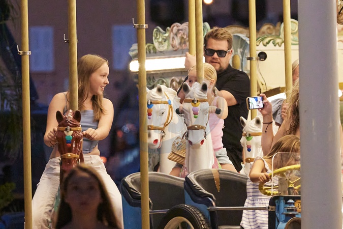 Exclusif - James Corden et sa femme Julia Carey s'amusent lors d'un tour de manège à Saint-Tropez