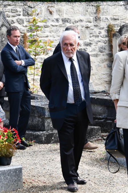 Exclusif - Dominique Strauss-Kahn (DSK) - Inhumation de Patrick Guerrand-Hermès (Directeur d'Hermès jusque 2012 et patriarche de la famille) au cimetière de Vineuil-Saint-Firmin dans l'Oise le 20 août 2024. Exclusive - Burial of Patrick Guerrand-Hermès (Director of Hermès until 2012 and patriarch of the family) at the Vineuil-Saint-Firmin cemetery in Oise on August 20, 2024.