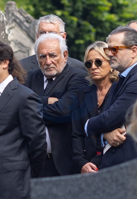 Exclusif - Dominique Strauss-Kahn (DSK) et sa compagne Myriam L'Aouffir - Inhumation de Patrick Guerrand-Hermès (Directeur d'Hermès jusque 2012 et patriarche de la famille) au cimetière de Vineuil-Saint-Firmin dans l'Oise le 20 août 2024. Exclusive - Burial of Patrick Guerrand-Hermès (Director of Hermès until 2012 and patriarch of the family) at the Vineuil-Saint-Firmin cemetery in Oise on August 20, 2024.
