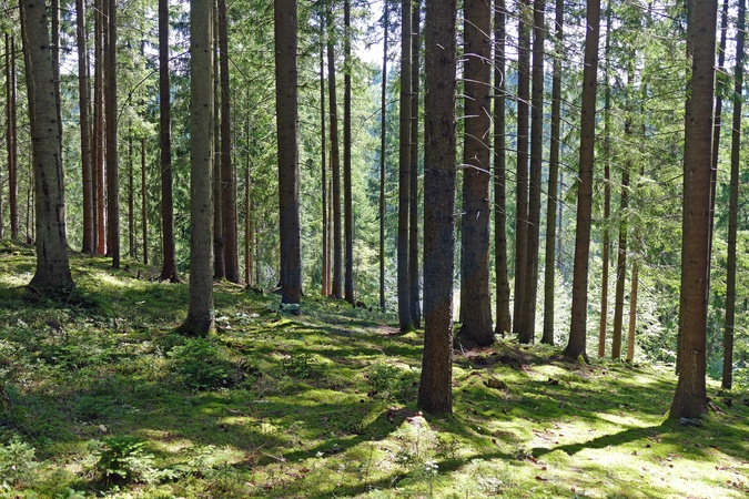 CHERNIVTSI REGION, UKRAINE - JULY 31, 2024 - A spruce forest is in the Carpathian Mountains, Vyzhnytsia district, Chernivtsi region, western Ukraine., Credit:Yurii Rylchuk / Avalon