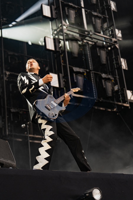 The Hives est en concert au festival Rock en Seine dans le parc de Saint-Cloud le 22 août 2024. © Alexandre Fumeron / Afterdepth / Bestimage The Hives perform at the Rock en Seine festival in the Parc de Saint-Cloud on 22 August 2024.