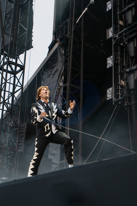 The Hives est en concert au festival Rock en Seine dans le parc de Saint-Cloud le 22 août 2024. © Alexandre Fumeron / Afterdepth / Bestimage The Hives perform at the Rock en Seine festival in the Parc de Saint-Cloud on 22 August 2024.