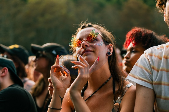 Ambiance lors du festival Rock en Seine dans le parc de Saint-Coud le 22 août 2024. © Alexandre Fumeron / Afterdepth / Bestimage The atmosphere at the Rock en Seine festival in the Parc de Saint-Coud on 22 August 2024