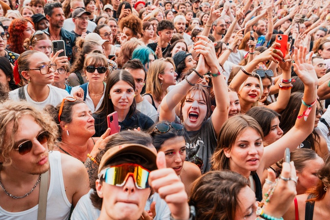 Ambiance lors du festival Rock en Seine dans le parc de Saint-Coud le 22 août 2024. © Alexandre Fumeron / Afterdepth / Bestimage The atmosphere at the Rock en Seine festival in the Parc de Saint-Coud on 22 August 2024