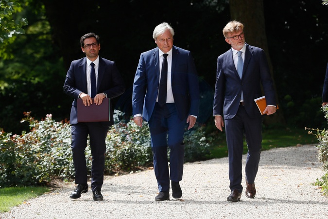 Stéphane Séjourné, ministre sortant des Affaires étrangères et européennes, Laurent Hénart, président du Parti radical français, Marc Fesneau, ministre sortant de l'Agriculture et de la Souveraineté alimentaire - Le président de la République française E.Macron reçoit les représentants du camp présidentiel à l'Elysée, le 23 août 2024, en vue de nommer le Premier ministre. Le chef de l'Etat doit recevoir les 23 et 26 août 2024 les leaders des formations politiques, avant de désigner le nouveau chef du gouvernement. © Christophe Clovis / Bestimage The President of the French Republic E. Macron receives the representatives of the presidential camp at the Elysée, on August 23, 2024, with a view to appointing the Prime Minister. The Head of State must receive the leaders of the political parties on August 23 and 26, 2024, before designating the new head of government.
