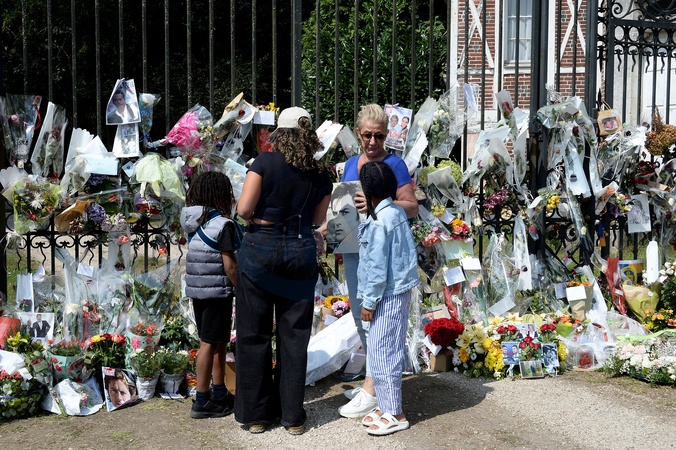 Kwiaty i wiadomości pozostawione przez fanów przed posiadłością Alaina Delona na kilka godzin przed pogrzebem aktora, który odbędzie się w kaplicy na jego posiadłości.