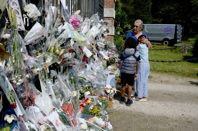 Kwiaty i wiadomości pozostawione przez fanów przed posiadłością Alaina Delona na kilka godzin przed pogrzebem aktora, który odbędzie się w kaplicy na jego posiadłości.