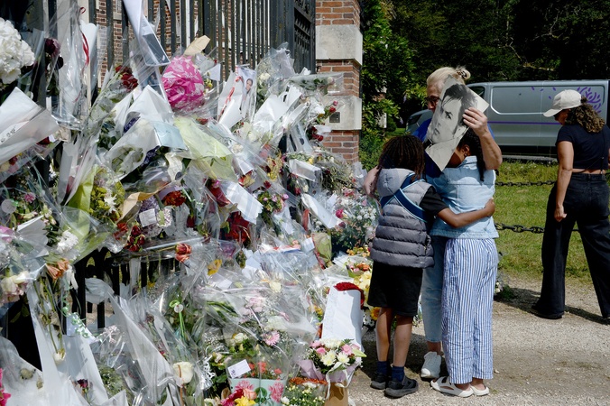 Kwiaty i wiadomości pozostawione przez fanów przed posiadłością Alaina Delona na kilka godzin przed pogrzebem aktora, który odbędzie się w kaplicy na jego posiadłości.