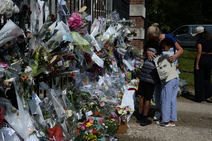 Kwiaty i wiadomości pozostawione przez fanów przed posiadłością Alaina Delona na kilka godzin przed pogrzebem aktora, który odbędzie się w kaplicy na jego posiadłości.