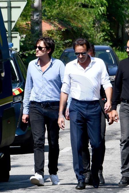 Anthony Delon i jego przyrodni brat Alain-Fabien odkrywają hołdy przed bramą posiadłości Douchy, na kilka godzin przed pogrzebem ich ojca, Alaina Delona