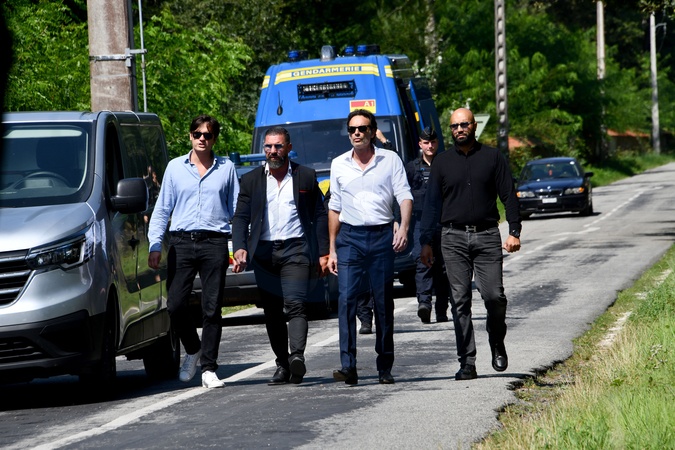 Anthony Delon i jego przyrodni brat Alain-Fabien odkrywają hołdy przed bramą posiadłości Douchy, na kilka godzin przed pogrzebem ich ojca, Alaina Delona