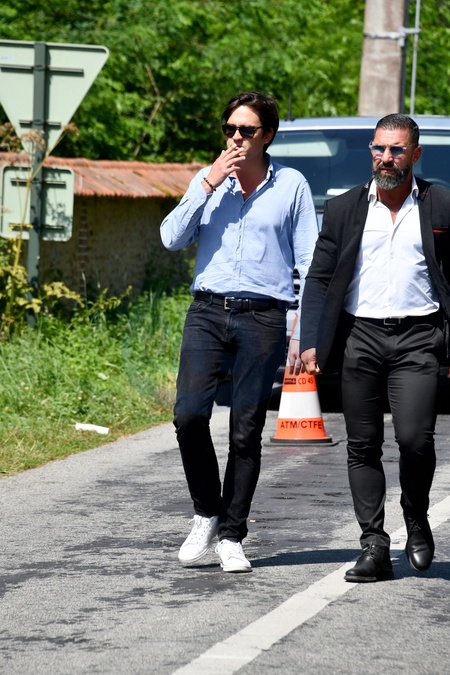 Anthony Delon et son demi-frère Alain-Fabien découvrent les hommages devant les grilles de la propriété de Douchy, quelques heures avant les obsèques de leur père, Alain Delon