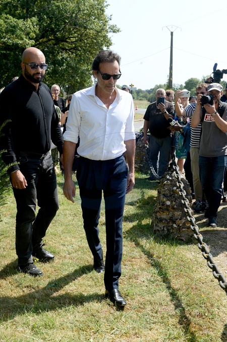 Anthony Delon i jego przyrodni brat Alain-Fabien odkrywają hołdy przed bramą posiadłości Douchy, na kilka godzin przed pogrzebem ich ojca, Alaina Delona