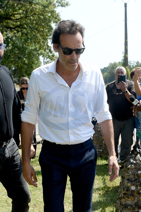Anthony Delon et son demi-frère Alain-Fabien découvrent les hommages devant les grilles de la propriété de Douchy, quelques heures avant les obsèques de leur père, A.Delon, le 24 août 2024. Décédé le 18 août 2024, l'acteur a rendu son dernier souffle, entouré des siens dans sa propriété de Douchy, où il sera inhumé, le 24 août 2024 vers 17 heures dans une chapelle, construite il y a une vingtaine d'années. Anthony Delon and his half-brother Alain-Fabien discover the tributes in front of the gates of the Douchy property, a few hours before the funeral of their father, A. Delon, on August 24, 2024. Deceased on August 18, 2024, the actor took his last breath, surrounded by his family in his Douchy property, where he will be buried on August 24, 2024 around 5 p.m. in a chapel, built around twenty years ago.