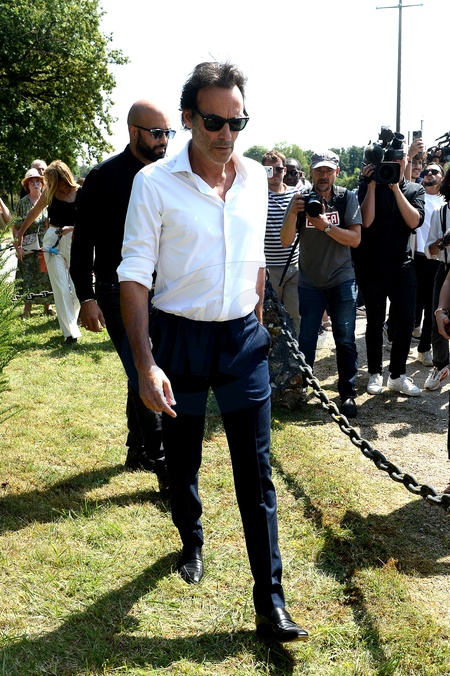 Anthony Delon et son demi-frère Alain-Fabien découvrent les hommages devant les grilles de la propriété de Douchy, quelques heures avant les obsèques de leur père, A.Delon, le 24 août 2024. Décédé le 18 août 2024, l'acteur a rendu son dernier souffle, entouré des siens dans sa propriété de Douchy, où il sera inhumé, le 24 août 2024 vers 17 heures dans une chapelle, construite il y a une vingtaine d'années. Anthony Delon and his half-brother Alain-Fabien discover the tributes in front of the gates of the Douchy property, a few hours before the funeral of their father, A. Delon, on August 24, 2024. Deceased on August 18, 2024, the actor took his last breath, surrounded by his family in his Douchy property, where he will be buried on August 24, 2024 around 5 p.m. in a chapel, built around twenty years ago.