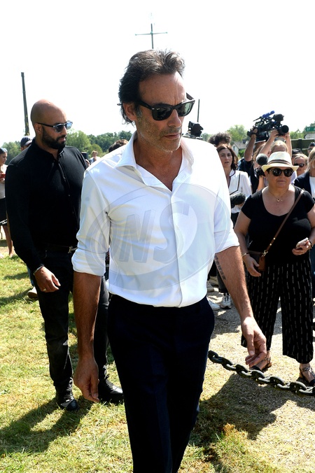 Anthony Delon i jego przyrodni brat Alain-Fabien odkrywają hołdy przed bramą posiadłości Douchy, na kilka godzin przed pogrzebem ich ojca, Alaina Delona
