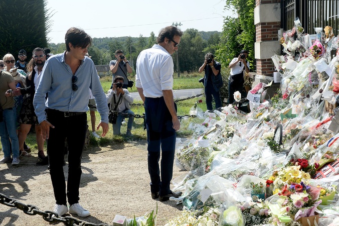 Anthony Delon i jego przyrodni brat Alain-Fabien odkrywają hołdy przed bramą posiadłości Douchy, na kilka godzin przed pogrzebem ich ojca, Alaina Delona