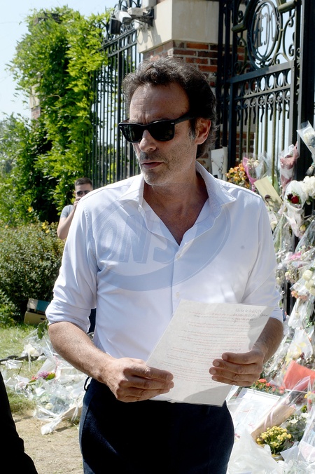 Anthony Delon i jego przyrodni brat Alain-Fabien odkrywają hołdy przed bramą posiadłości Douchy, na kilka godzin przed pogrzebem ich ojca, Alaina Delona