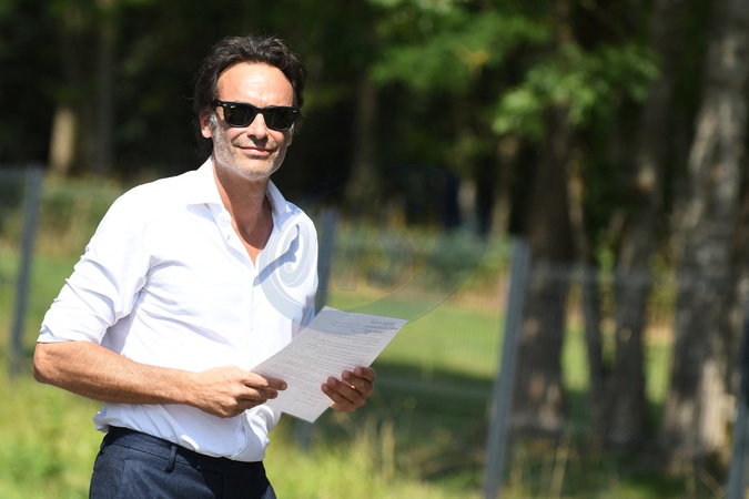 Anthony Delon et son demi-frère Alain-Fabien découvrent les hommages devant les grilles de la propriété de Douchy, quelques heures avant les obsèques de leur père, A.Delon, le 24 août 2024. Décédé le 18 août 2024, l'acteur a rendu son dernier souffle, entouré des siens dans sa propriété de Douchy, où il sera inhumé, le 24 août 2024 vers 17 heures dans une chapelle, construite il y a une vingtaine d'années. Anthony Delon and his half-brother Alain-Fabien discover the tributes in front of the gates of the Douchy property, a few hours before the funeral of their father, A. Delon, on August 24, 2024. Deceased on August 18, 2024, the actor took his last breath, surrounded by his family in his Douchy property, where he will be buried on August 24, 2024 around 5 p.m. in a chapel, built around twenty years ago.