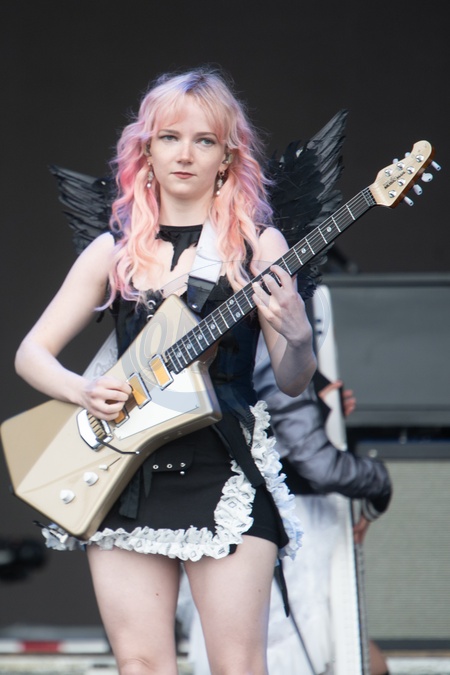 Lead guitarist Emily Roberts of English indie rock band The Last Dinner Party performs on the Main Stage at Reading Festival 2024, Little John's Farm, Reading, England, UK on Saturday 24 August 2024., Credit:Justin Ng / Avalon