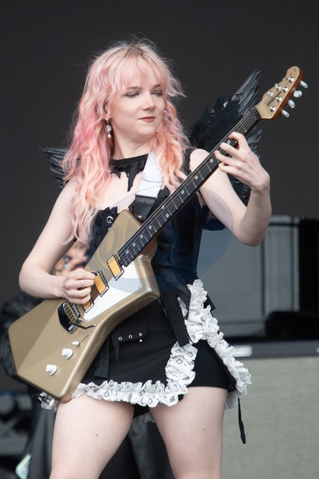 Lead guitarist Emily Roberts of English indie rock band The Last Dinner Party performs on the Main Stage at Reading Festival 2024, Little John's Farm, Reading, England, UK on Saturday 24 August 2024., Credit:Justin Ng / Avalon