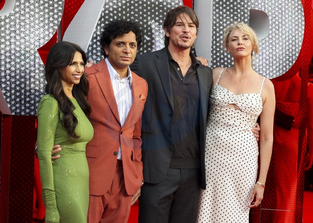 Bhavna Vaswani, M. Night Shyamalan, Josh Hartnett and Tamsin Egerton at the Trap UK Special Screening at O2 in North Greenwich, London, United Kingdom, Credit:Cat Morley / Avalon