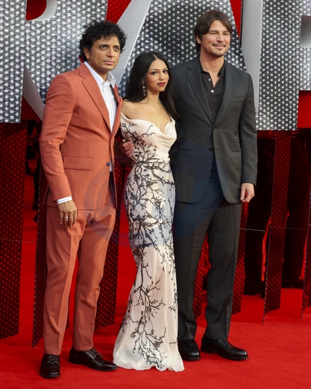 M. Night Shyamalan, Saleka and Josh Hartnett at the Trap UK Special Screening at O2 in North Greenwich, London, United Kingdom, Credit:Cat Morley / Avalon