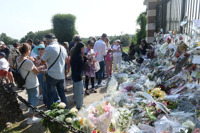 Les fans rendent hommage à Alain Delon devant la grille de sa propriété à Douchy-Montcorbon pendant ses obsèques