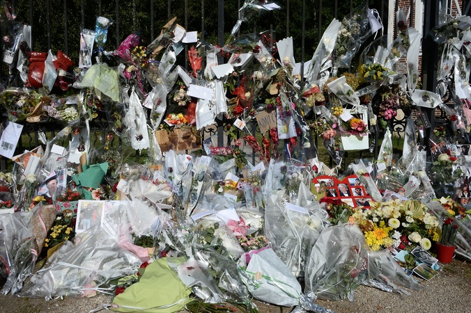 Les fans rendent hommage à Alain Delon devant la grille de sa propriété à Douchy-Montcorbon pendant ses obsèques
