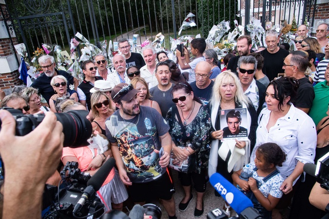 Les fans rendent hommage à Alain Delon devant la grille de sa propriété à Douchy-Montcorbon pendant ses obsèques