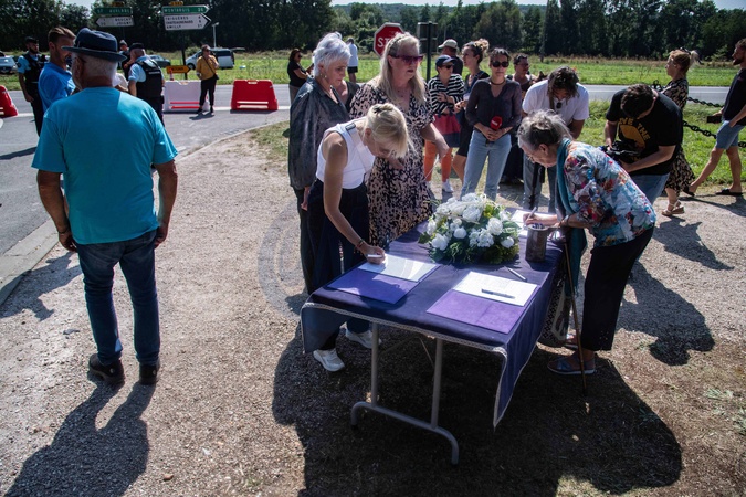 Les fans rendent hommage à Alain Delon devant la grille de sa propriété à Douchy-Montcorbon pendant ses obsèques