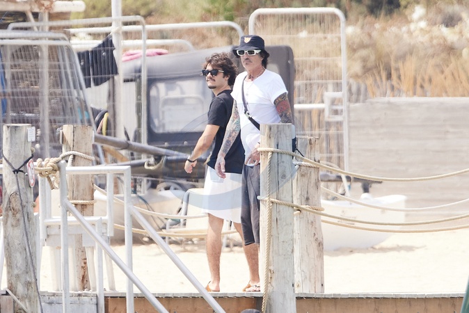 Tommy Lee i jego synowie Brandon i Dylan przybywają na plażę w Saint-Tropez, aby udać się na lunch