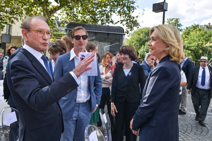 Bertrand Delanoë, Valérie Pécresse - Le président E.Macron lors de la cérémonie de commémoration du 80ème anniversaire de la libération de Paris Place Denfert-Rochereau le 25 août 2024 © Isa Harsin / Pool / Bestimage President E.Macron at the ceremony commemorating the 80th anniversary of the liberation of Paris at Place Denfert-Rochereau on august 25th 2024