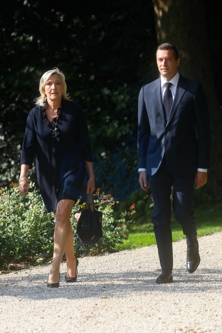 Marine Le Pen i Jordan Bardella przybywają do Pałacu Elizejskiego na rozmowę z Prezydentem Republiki