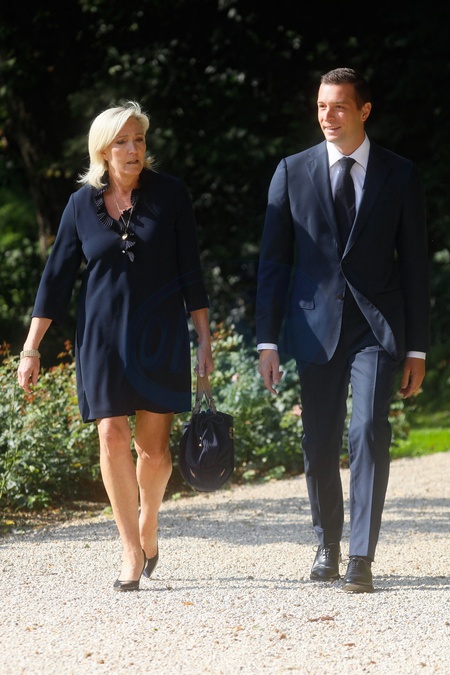 Marine Le Pen et Jordan Bardella arrivent à l'Elysée pour un entretien avec le président de la République le 26 août 2024. © Christophe Clovis / Bestimage
