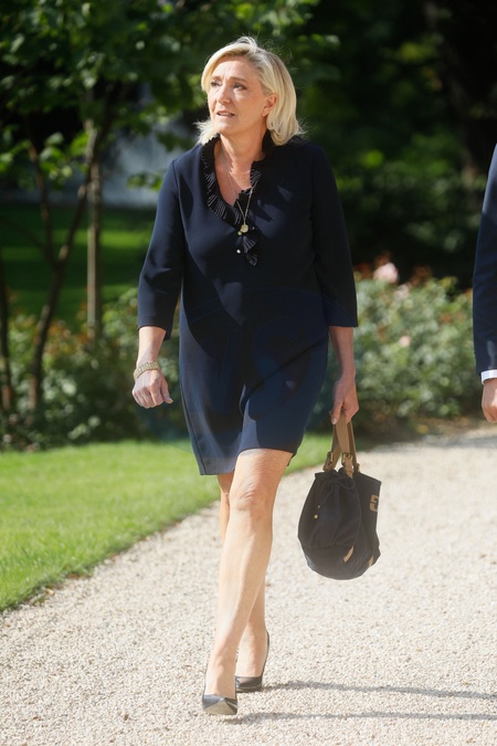 Marine Le Pen et J.Bardella arrivent à l'Elysée pour un entretien avec le président de la République le 26 août 2024. © Christophe Clovis / Bestimage