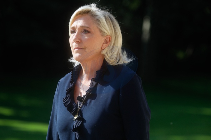 Marine Le Pen et J.Bardella arrivent à l'Elysée pour un entretien avec le président de la République le 26 août 2024. © Christophe Clovis / Bestimage
