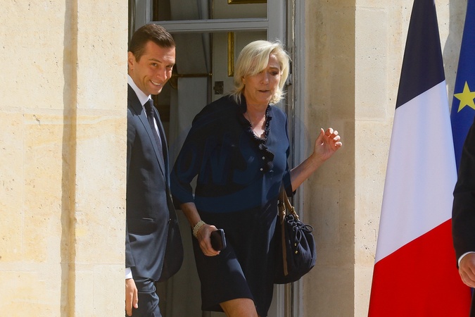 Marine Le Pen et Jordan Bardella sortent de leur entretien avec le président de la République à l'Elysée