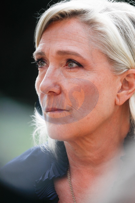 Marine Le Pen et Jordan Bardella sortent de leur entretien avec le président de la République à l'Elysée