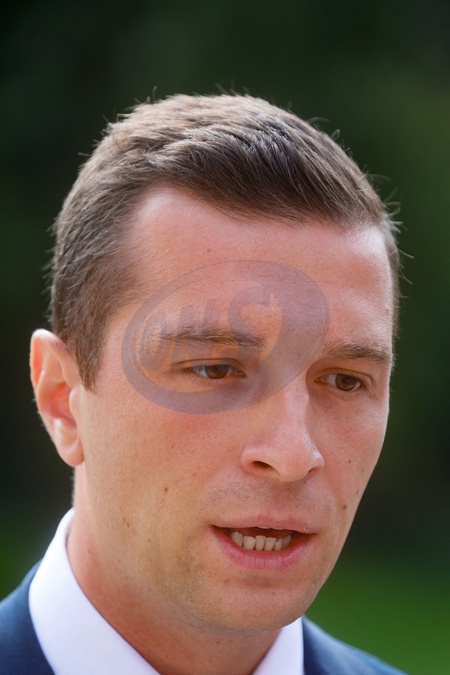 Marine Le Pen et Jordan Bardella sortent de leur entretien avec le président de la République à l'Elysée le 26 août 2024. © Christophe Clovis / Bestimage