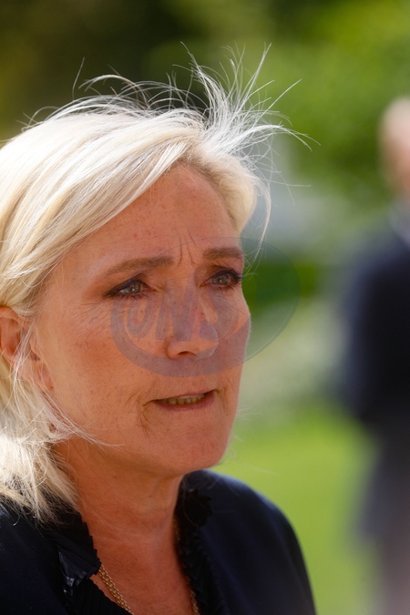 Marine Le Pen et Jordan Bardella sortent de leur entretien avec le président de la République à l'Elysée