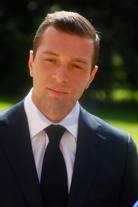 Marine Le Pen et Jordan Bardella sortent de leur entretien avec le président de la République à l'Elysée